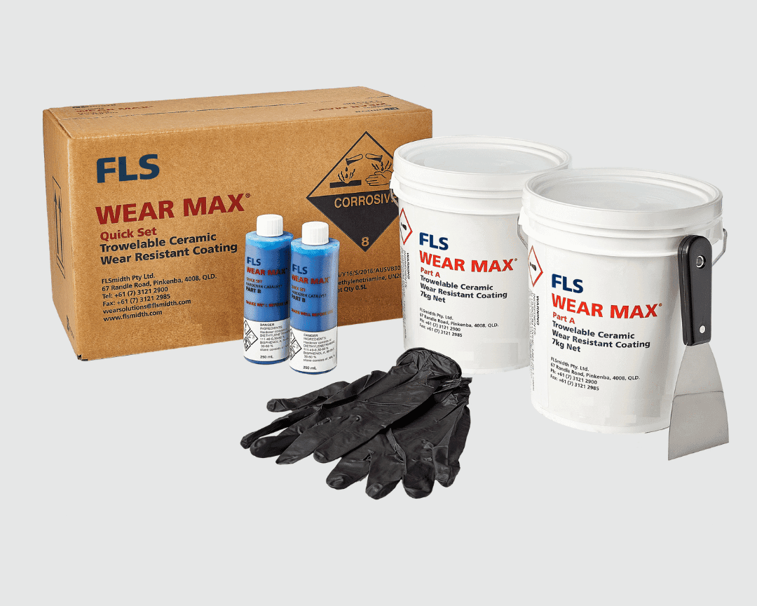 WEAR MAX is proven to reduce abrasion wear problems commonly occurring in bulk handling and processing equipment such as pipes, chutes, silos, tanks, and casings. It adheres effectively to most clean and dry surfaces including metal, ceramic, rubber and concrete. WEAR MAX reaches maximum hardness after curing for just 24 hours, based on an ambient temperature of 23°C (73°F), so you can get back to work with little downtime.